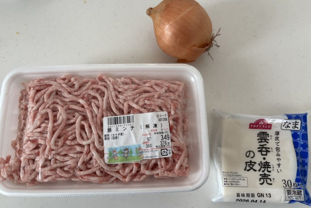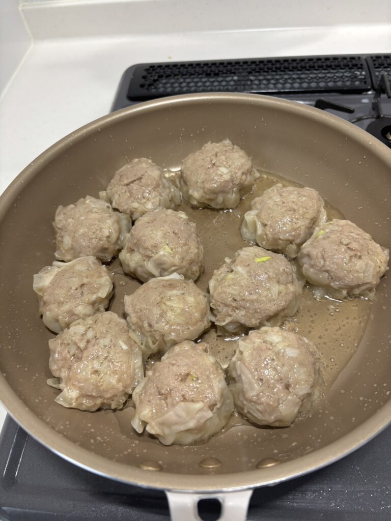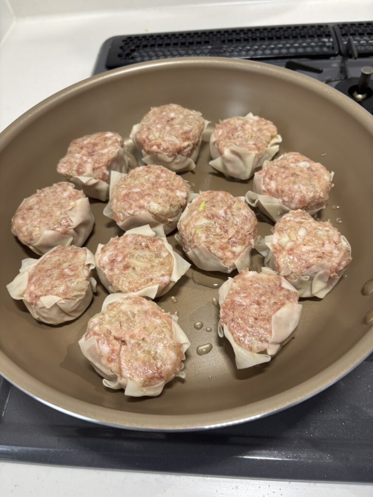 これだけで 簡単にシュウマイ完成。そのままフライパンへ。