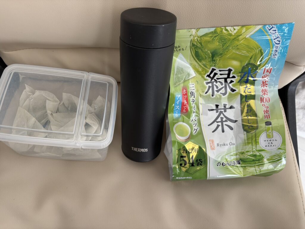 そこで昔使っていたサーモスの水筒を使ってみることにしました。お茶を飲みたいと思い調べていたところ、のむらの茶園さんの水出し緑茶ティーバッグを見つけました。