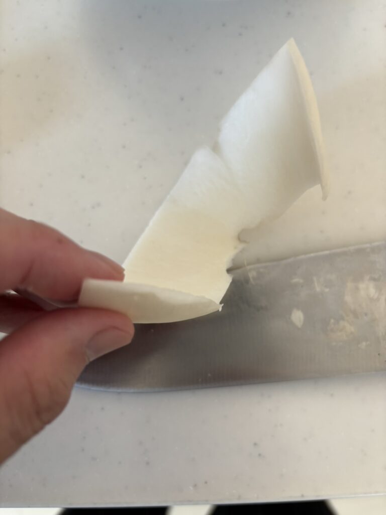 - 大根切るの苦労した: 初めての桂向きは難しかった。指を切るか不安が強く、皮が厚くなってしまいました💦なんとか大根切れました(笑)