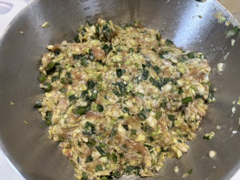 野菜とひき肉を混ぜるだけ。